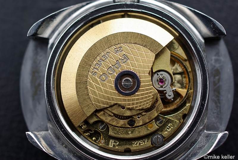 #Rado Voyager Two, ca. 1972 ETA 2789 (Rado R 2798), Automatik/automatic, ca. 1969 - 1976, Rado Ref. 625.xxxx.x 11.5''', Ø: 25,6 mm, H: 5,9 mm, 25 Steine/jewels, Zentralsekunde/center second, Tag + Datum Schnellschaltung/day + date quickset, f = 21.600 A/h, Incabloc, einige mit Triovis- oder Mikrometer/Exzenter-Regulierung/some with Triovis- or micrometer/excenter-regulation Gangreserve/power reserve: 46 h ETA 2824: #Rado Berard 700, ca. 1973 ETA 2824 (Rado R 2824), Automatik/automatic, 1971 - 1979, Rado Ref. 633.xxxx.x 11.5''', Ø: 25,6 mm, H: 4,8 mm, 25 Steine/jewels, Zentralsekunde/center second, Datum Schnellschaltung/date quickset, Sekundenstop/hack feature, f = 21.600 A/h, Incabloc, einige mit Triovis- oder Mikrometer/Exzenter-Regulierung/some with Triovis- or micrometer/excenter-regulation Gangreserve/power reserve: 40 h ETA 2824-2: